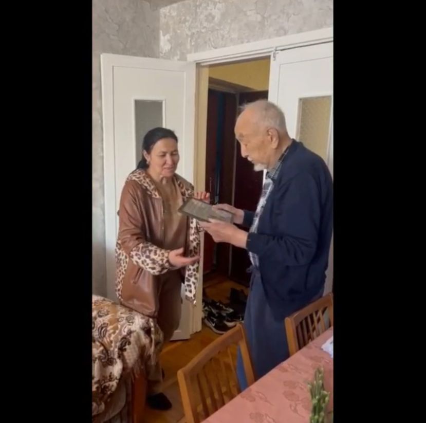"Мейірім" балаларды қолдау орталығының балалары , Ұлы Отан соғысының ардагері Сәрсен Қамбар Әмірұлының шаңырағында болып құттықтау хатын табыс етті.