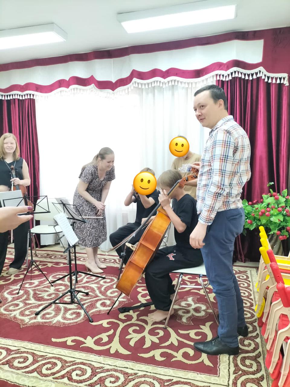 07 июнь 2023 0 1 2 3 4 5 "Мейірім"өмірлік қиын жағдайдағы балаларды қолдау орталығына виолончелистер келіп концерт қойды Балаларға виолончель қатты ұнады, қызығушылықтары оянды. Барлығы виолончельді ұстап, ойнап көрді.