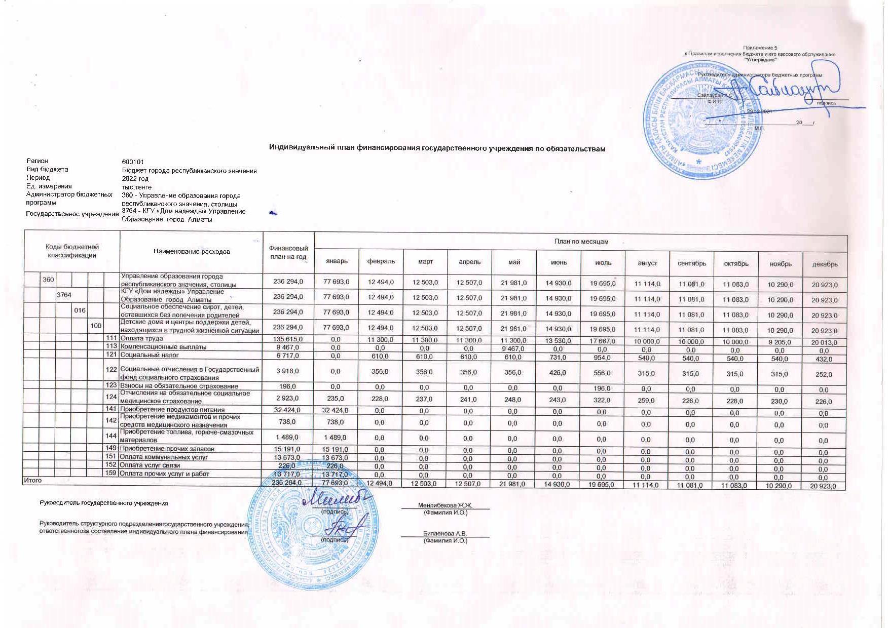 » Индивидуальный план финансирование на 2022 г